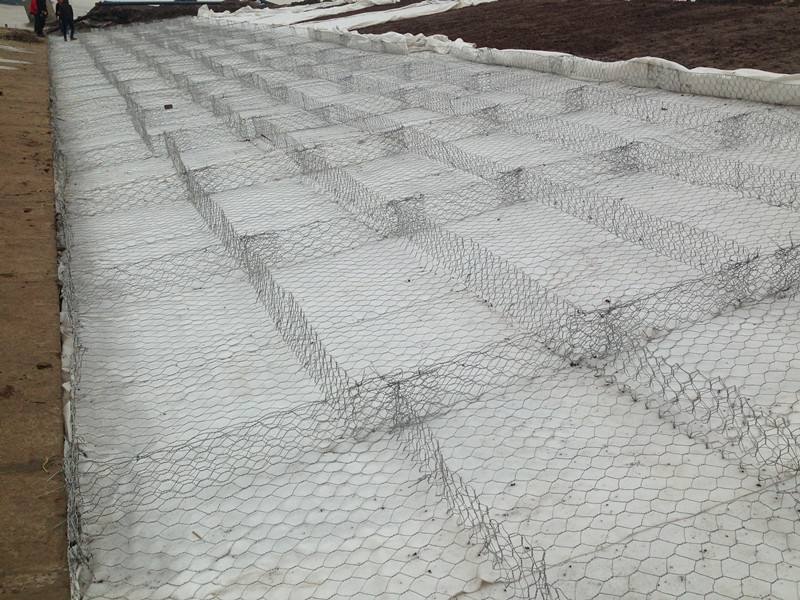 網(wǎng)箱內(nèi)填充石料,多個(gè)網(wǎng)箱鏈接最終連成整體。
